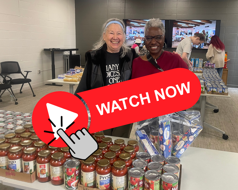 Twenty volunteers, including longtime volunteer Augusta (L) and new volunteer Beverly, gathered on a Sunday in March to pack 200 spaghetti dinners with snacks, which have been delivered to Little Free Pantries across Madison County.